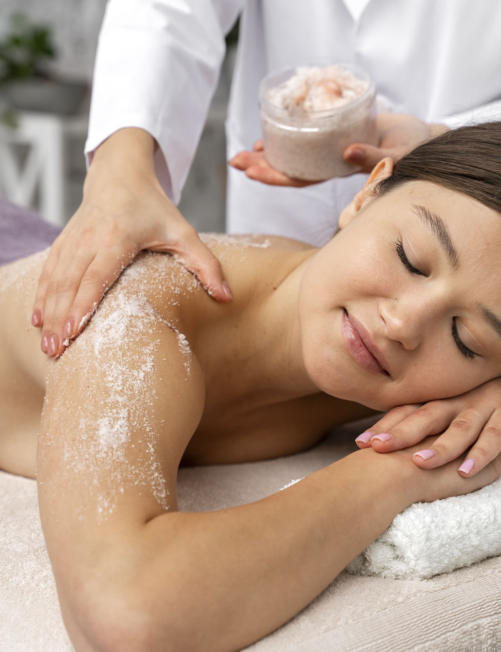 Este é um procedimento que consiste na aplicação de produtos esfoliantes, que são massageados suavemente sobre o corpo, removendo células mortas e impurezas presentes na superfície da pele. O objetivo é promover a renovação celular, melhora da textura da pele, estimular a circulação sanguínea e ajudar na absorção de produtos, como hidratantes e óleos. O resultado é uma pele mais macia, suave, radiante e preparada para receber tratamentos adicionais, como hidratação ou bronzeamento. E não para por aí, proporciona uma sensação relaxante e revigorante durante o processo.